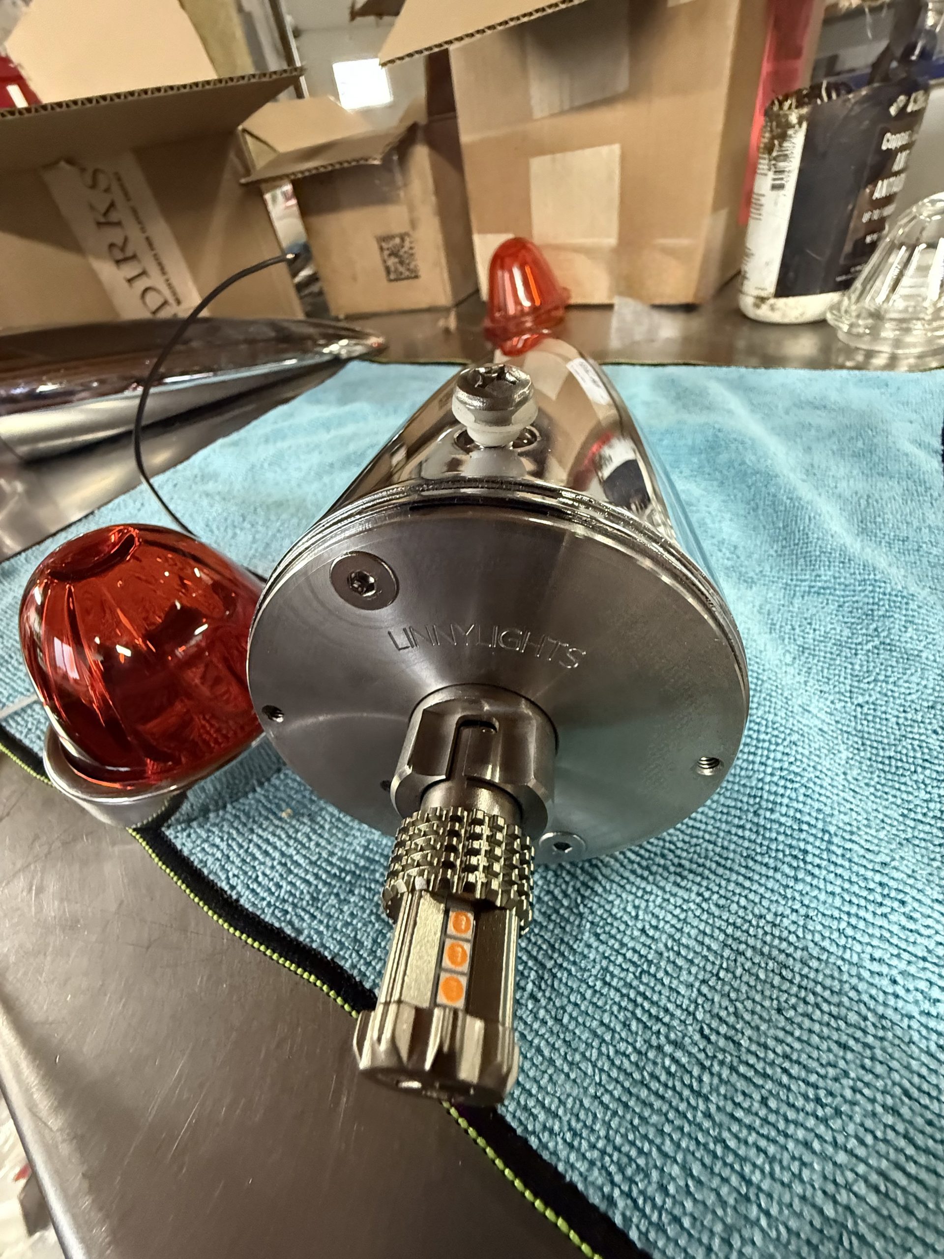 Complete diecast roof light with all stainless machined insert. Comes complete with led bulb. ready to wire in and bolt on. Glass watermelon lens. Uses a 1156 bulb. Grand General housing