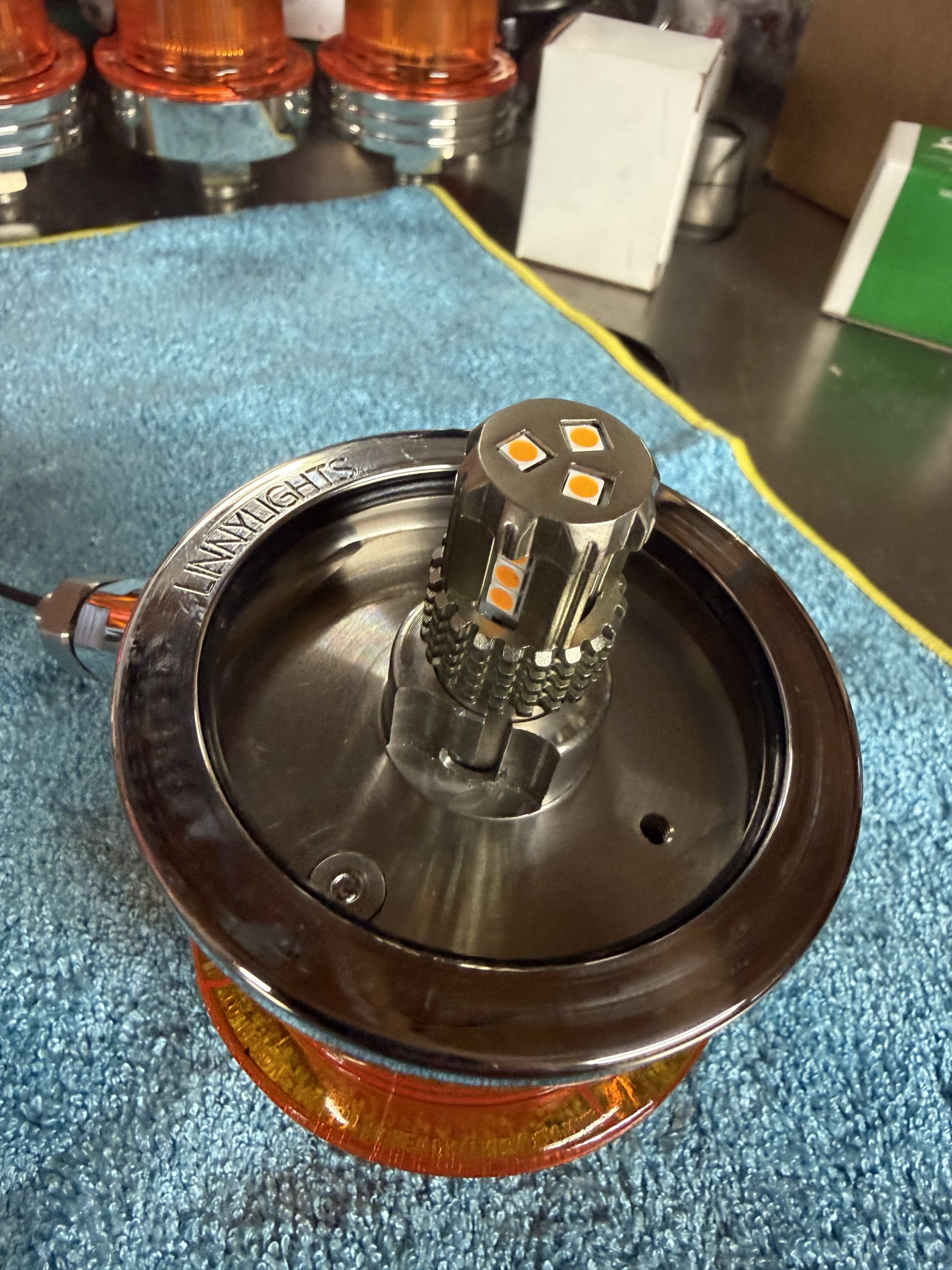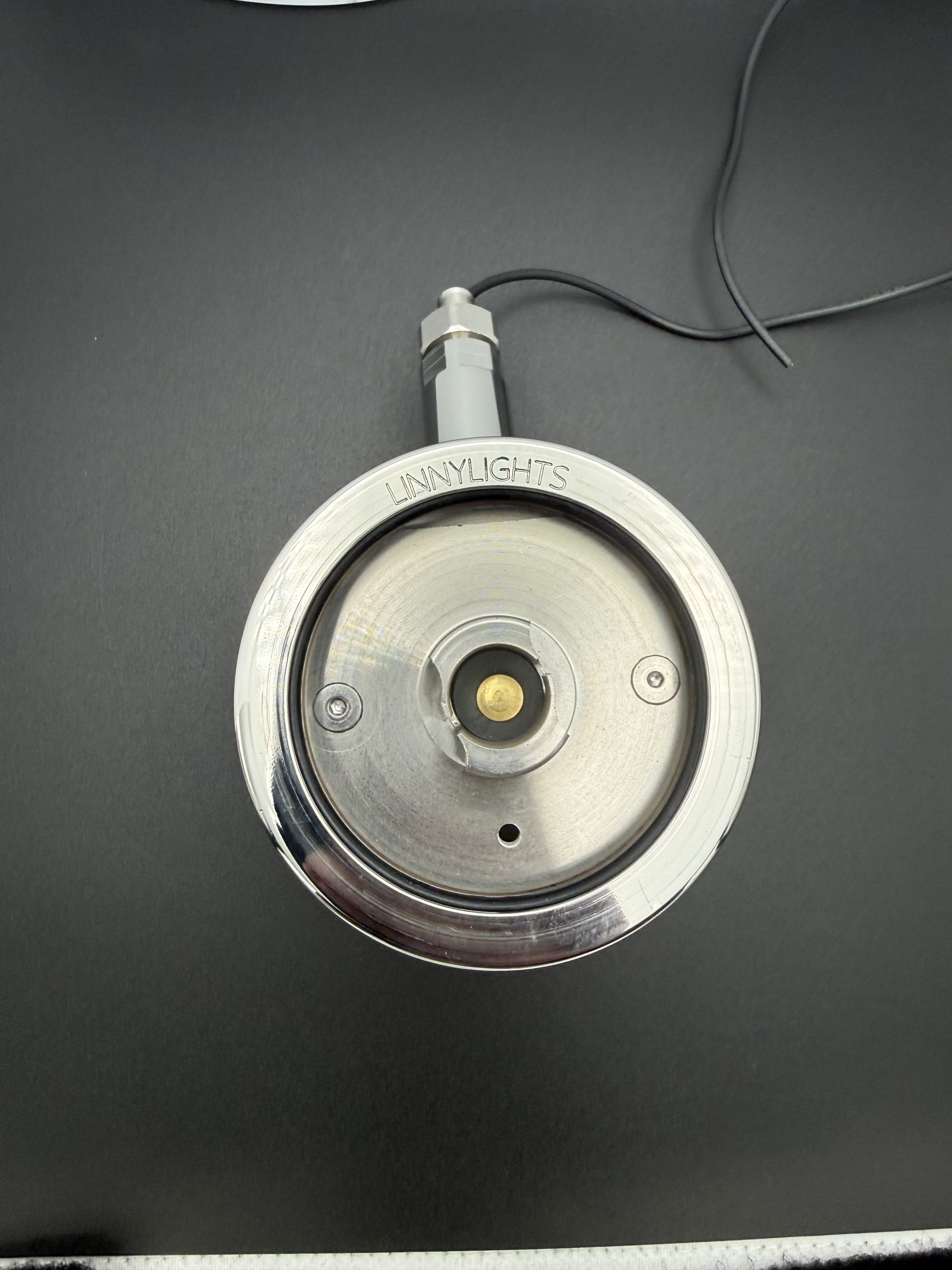 All stainless steel light housing with 1-3/4″ long hollow post and 1/2″ hollow bolt to run wiring thru with short nipple to attach shrink tube to ensure a waterproof seal. Removable bulb holder insert with a threaded hole to attach ground wire. All stainless construction with all stainless bulb holder. Single function 1156 bulb. LED bulb included. Sold each.