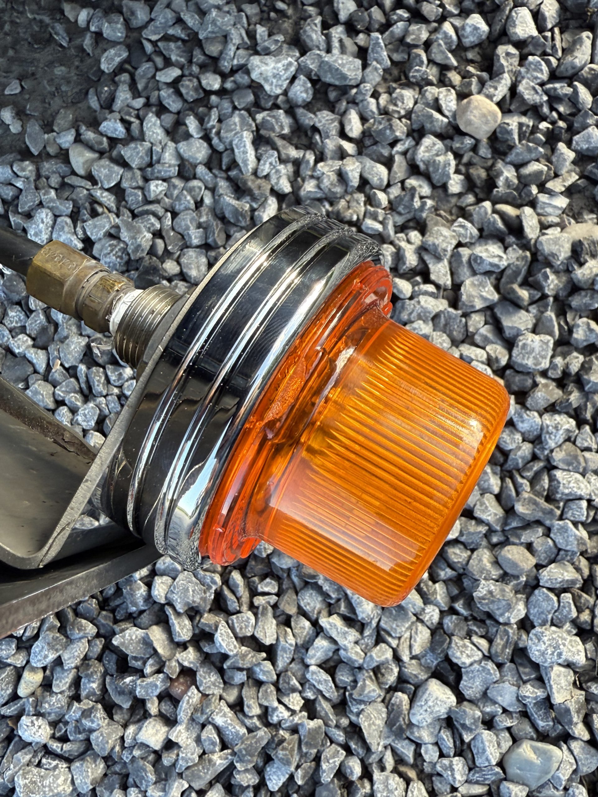 All stainless steel base with a 7/8” threaded stem for mounting light. The inside of mounting stem has 1/4 in pipe thread to attach fitting for airline or similar line to run wiring through. Available in amber red or clear lens. Available in a smooth or grooved housing. Outside diameter of housing is 3.5 inches instead of the traditional 3 inch. Available in single function for clearance or dual function for turn signal function. Led bulb included. Sold each
